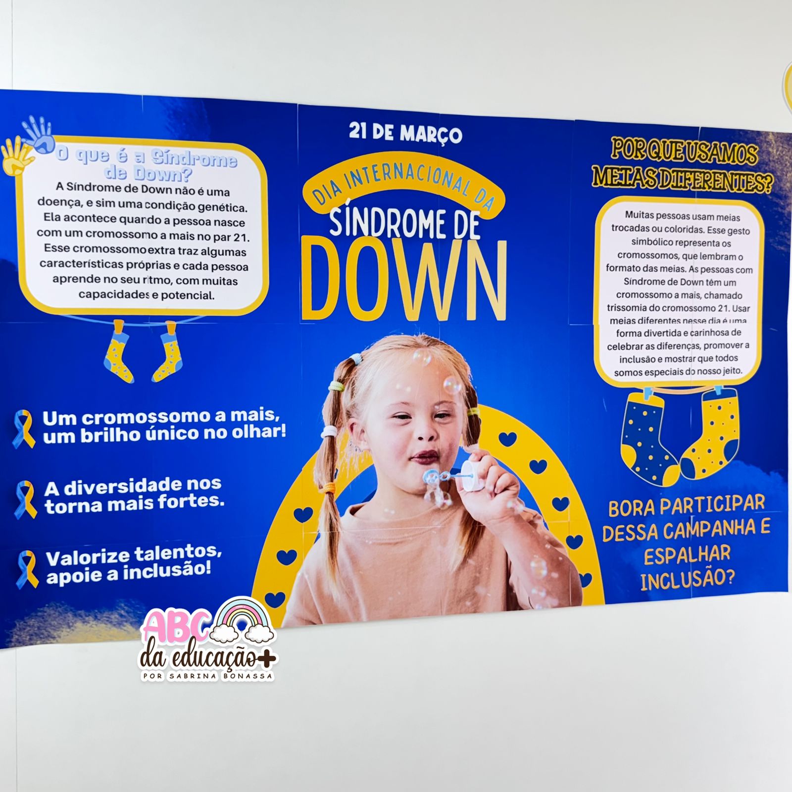 O Banner Informativo – Dia Internacional da Síndrome de Down é um material educativo ideal para trabalhar a conscientização, o respeito e a inclusão no ambiente escolar.