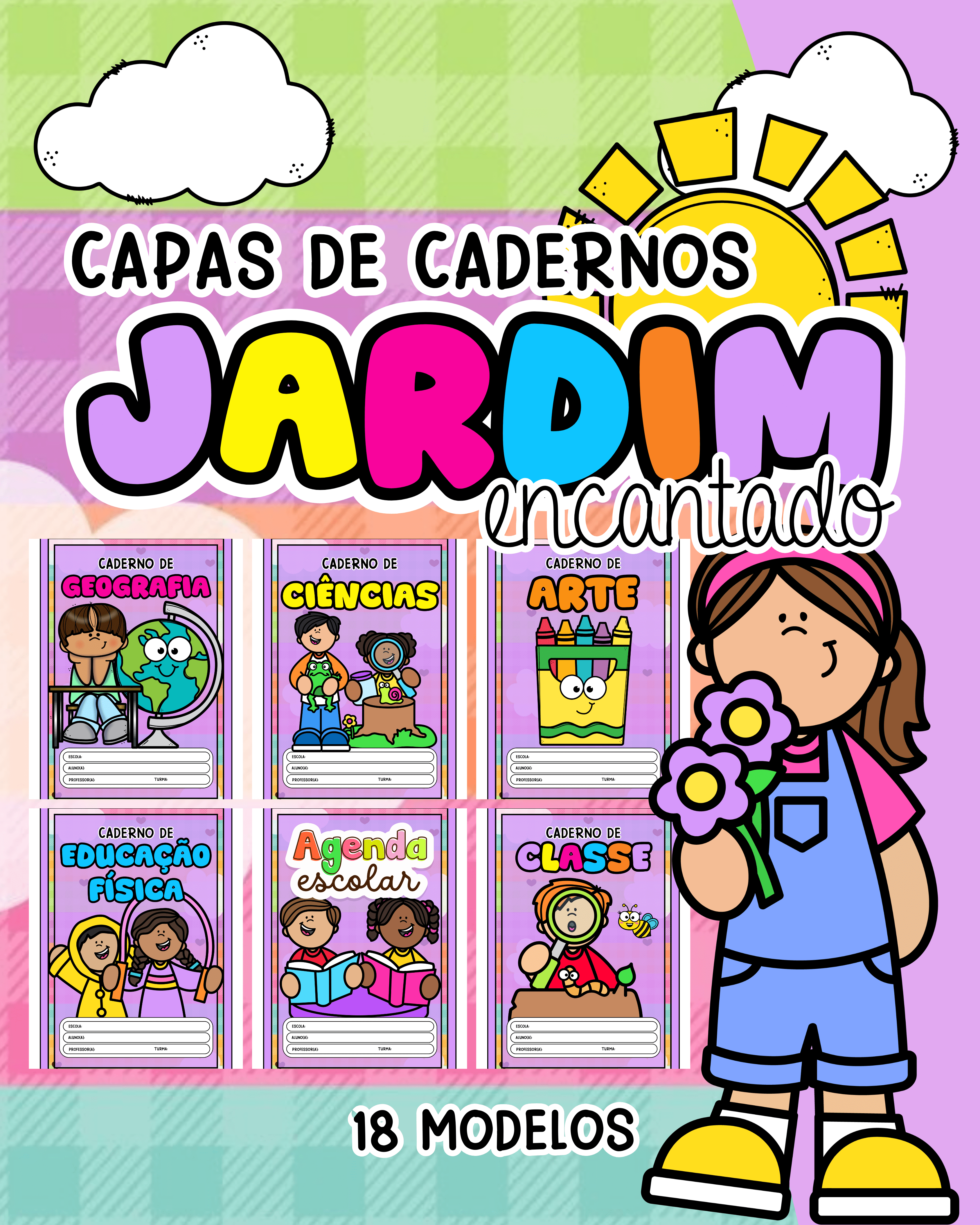 ✨ Um material delicado, colorido e encantador, inspirado no universo do jardim, ideal para deixar a rotina escolar mais organizada, alegre e acolhedora. As Capinhas – Tema Jardim tornam os cadernos ainda mais atrativos para as crianças.