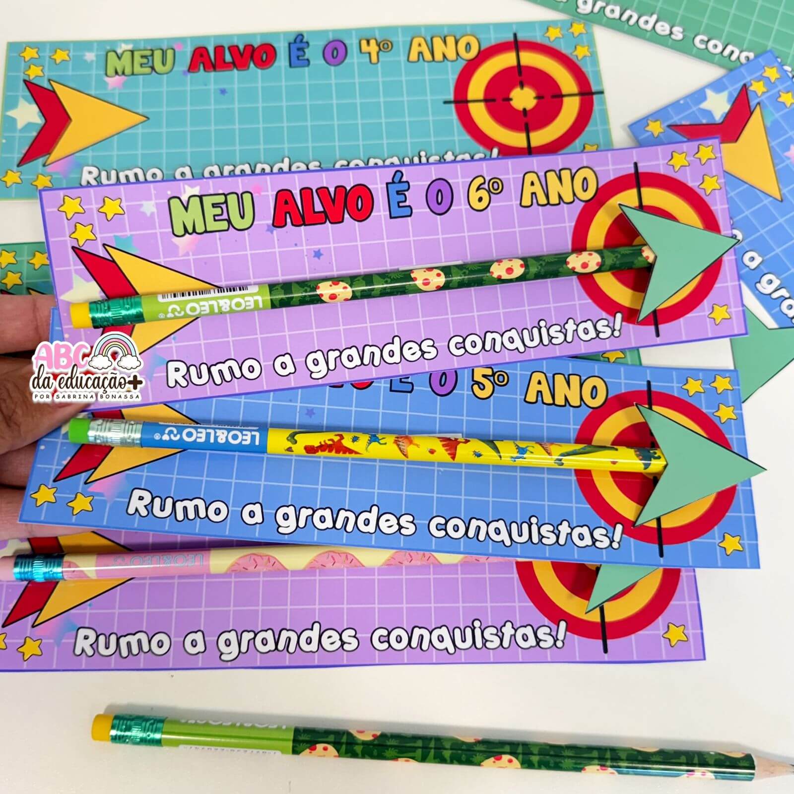 Com um visual colorido, divertido e cheio de personalidade, cada cartão vem com alvo, flecha temática e espaço para encaixar um lápis superfofo — criando um presente simbólico que motiva e inspira para o próximo ano escolar. Perfeito para turmas do 1º ao 6º ano, esse mimo é ideal para demonstrar carinho, celebrar o crescimento da turma e incentivar as novas metas que virão!